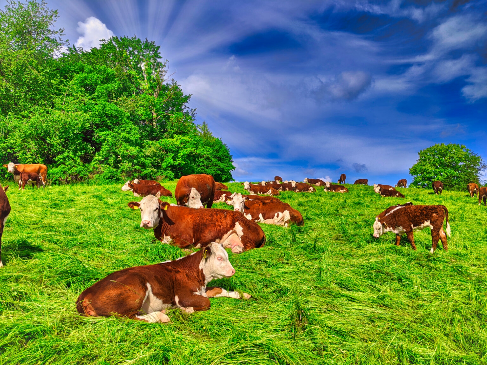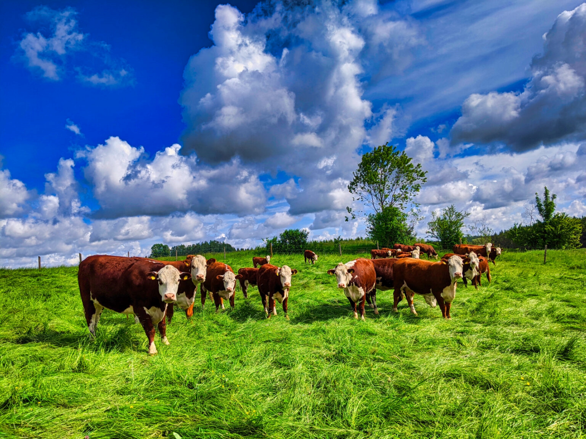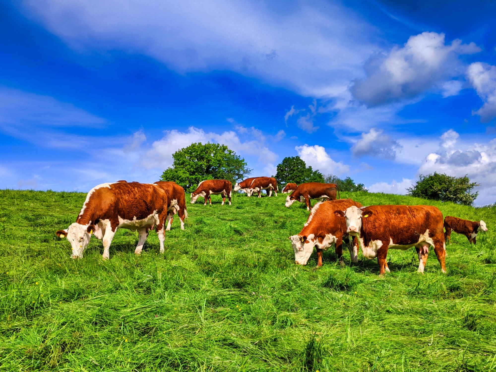 - Artgerechte Haltung: Unsere Hereford-Rinder wachsen auf großen Weiden auf und werden genfrei gefüttert.