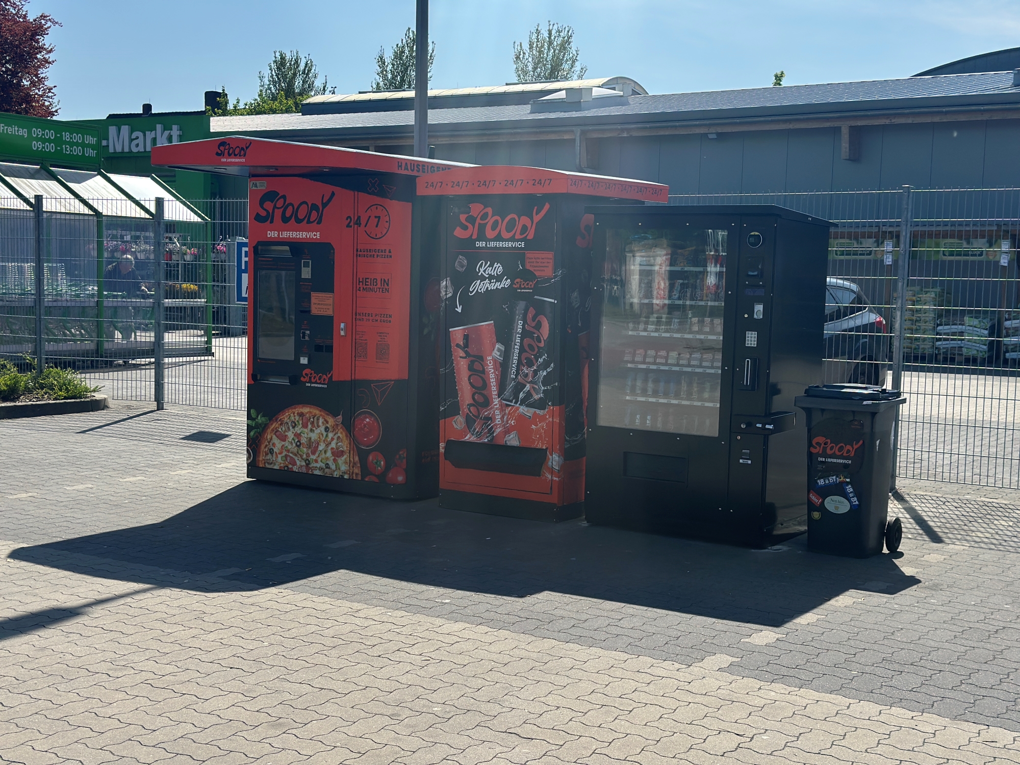 In der lebhaften Stadt Zeven steht der auffällige Pizzaautomat in einem strahlenden Rot, der mit der Aufschrift „Spoody“ markiert ist. Dieses Zeichen ist ein Garant für leckere Pizzen und schnellen Service.